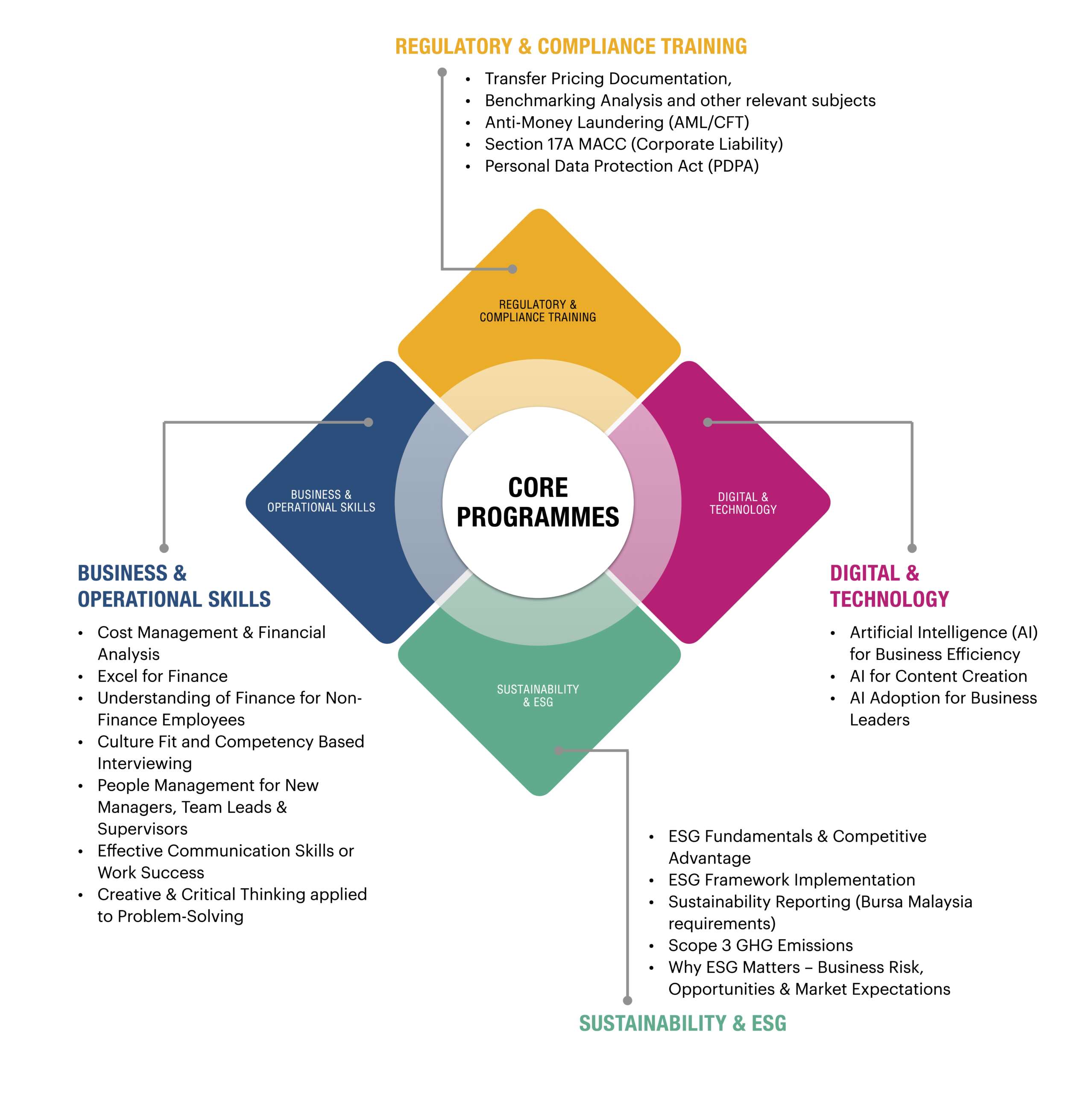 Treasure Training Sdn Bhd is the training division of Treasure Advisory Sdn Bhd, serving as the learning and development arm of the consultancy, focusing on delivering high-quality professional training programmes across Malaysia. As a registered HRD Corp training provider, we design and conduct both public and in-house courses tailored to corporate needs. Our offerings combine practical industry insights with regulatory compliance requirements, helping organisations strengthen their workforce capabilities and stay competitive in an evolving business environment.